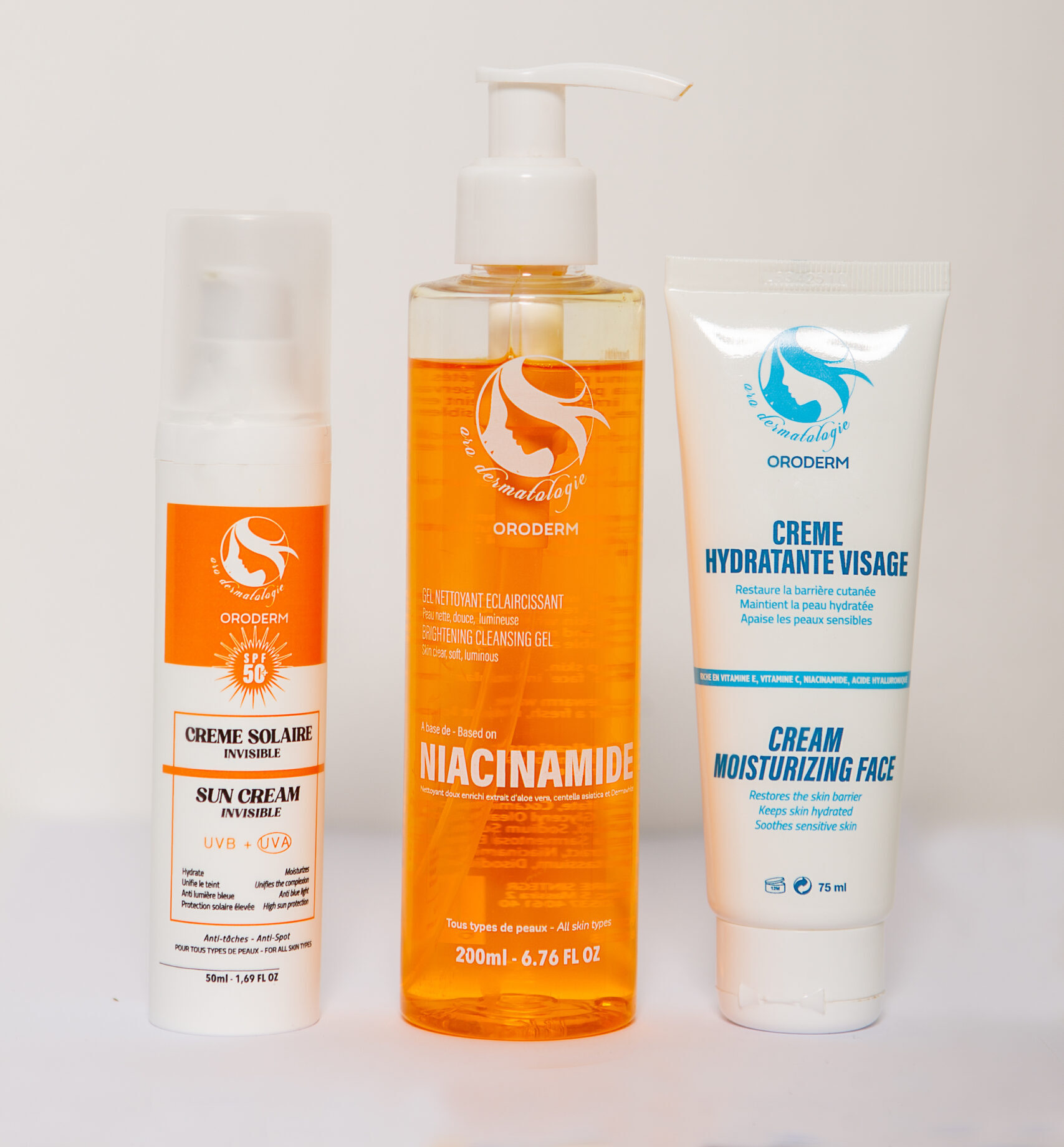 Pack Soin Visage ORODERM – Niacinamide, Crème Hydratante & Crème Solaire SPF50